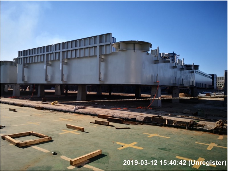 3月12-14日进行吊装作业和加固作业,14日上午8:00 所有事项全部完成,运输船离开乳山前往青岛。